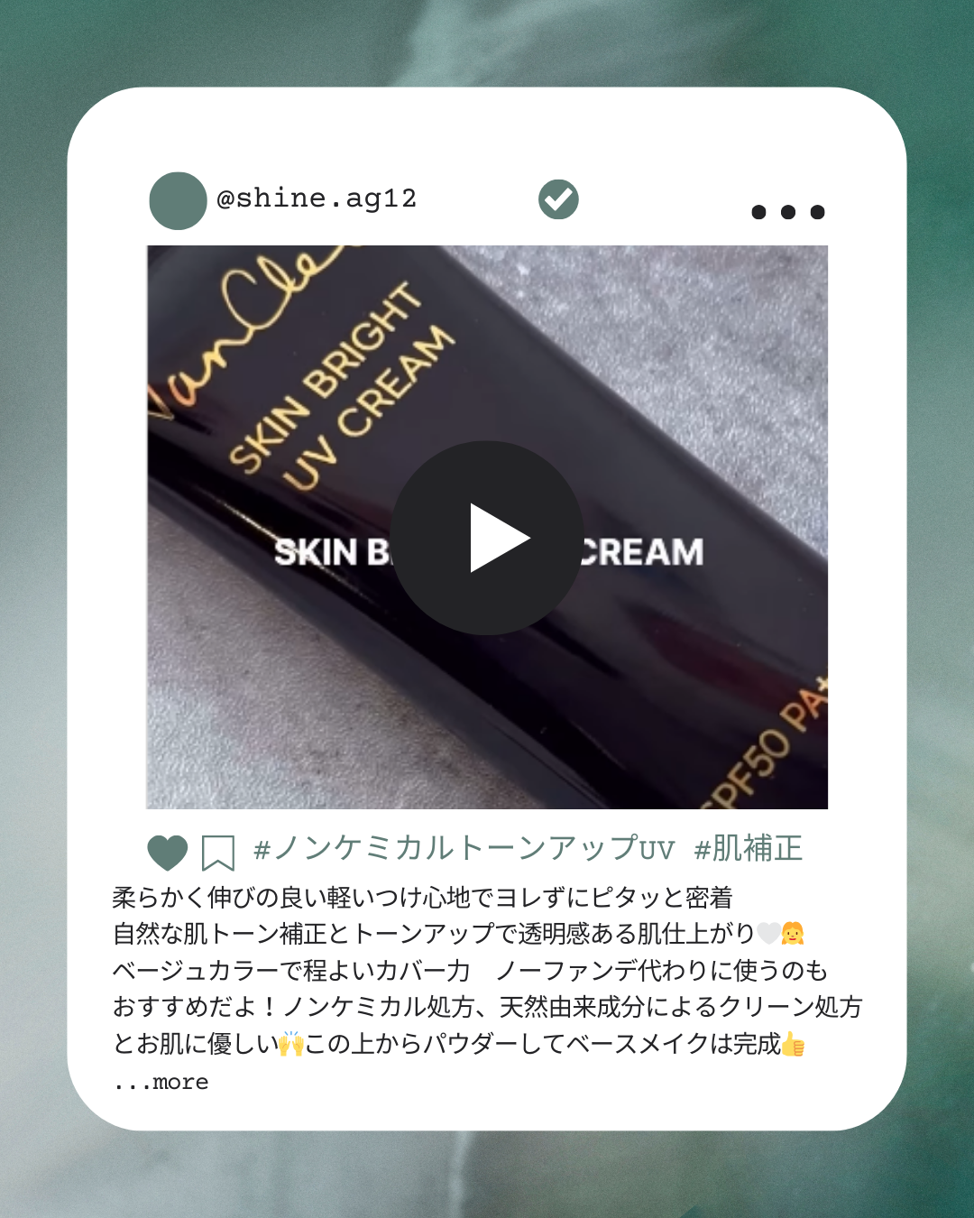 ブランド : バンクレオ (VanCleo) 商品名 : スキン ブライトUVクリーム 区分 : 化粧品 原産国 : 韓国製 内容量 :50ml 商品説明 : ベージュカラーのトーンアップUVクリームです。 これ1本で化粧下地、日焼け止め、スキンケア、肌補正が叶います。 保湿・美肌成分のヒアルロン酸・ナイアシンアミドや、カレンデュラを始めとしたハーブの栄養が素肌をケアし、しっとりとしたクリームを塗ったようなスキンケアと、肌悩みをカバーするメイクアップが可能に。 SPF50 PA++++で光老化の原因となるUVA派を強力ブロック。一年中紫外線・ブルーライト・外的刺激からあなたを守ります。 肌を補正する効果もあるのでお手軽なお出かけの際にも、しっかりメイクにも持っていて損はない1本です。 全成分: 水 / 酸化亜鉛 / シクロヘキサシロキサン / カプリリルメチコン / サリチル酸ブチルオクチル / カプリル酸プロピルヘプチル / BG / メチルトリメチコン / トリメチルシロキシケイ酸 / 酸化チタン / ポリグリセリル−3ポリジメチルシロキシエチルジメチコン / ナイアシンアミド / ラウリルポリグリセリル−3ポリジメチルシロキシエチルジメチコン / ケイ酸(Na/K/Al) / ジステアルジモニウムヘクトライト / ジポリヒドロキシステアリン酸ポリグリセリル−2 / シソ葉エキス / セイヨウタンポポ根茎/根エキス / アシタバ葉/茎エキス / ドクダミエキス / タチジャコウソウ葉エキス / トウキンセンカ花エキス / ヒアルロン酸Na / (ジメチコン/ビニルジメチコン)クロスポリマー / (カプリル酸/カプリン酸)ヤシアルキル / トリエトキシカプリリルシラン / 硫酸Mg / ポリヒドロキシステアリン酸 / ジメチコノール / トリシロキサン / 1,2−ヘキサンジオール / メタクリル酸メチルクロスポリマー / ポリメチルシルセスキオキサン / シリカ / カプリル酸グリセリル / カプリリルグリコール / 水酸化Al / ポリメタクリル酸メチル / ジエチルヘキサン酸ネオペンチルグリコール / エチルヘキシルグリセリン / アデノシン / トコフェロール / DPG / 香料 / 酸化鉄(CI 77492) / 酸化鉄(CI 77491) / 酸化鉄(CI 77499) |